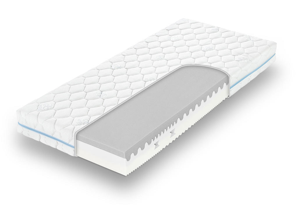 Super pružná a odolná ortopedická matrace bez lepidel. Vzdušný spoj, vynikající pěny se zónovou konstrukcí, rozdílnou tuhostí stran a ramenních zón předurčují matraci pro široké použití od dětí až po seniory, včetně náročnějších spáčů.