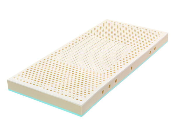 LATEX: Pružný, odolný, s podílem přírodních surovin a vysokou objemovou hmotností 60 kg/m3 . Pohodlí, vzdušnost, vynikající ortopedické vlastnosti. Měkčí strana.