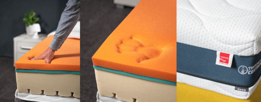 Druhá strana každé matrace je vyrobena z houževnaté studené pěny. Robustní konstrukce zajišťuje přirozenou tuhost.